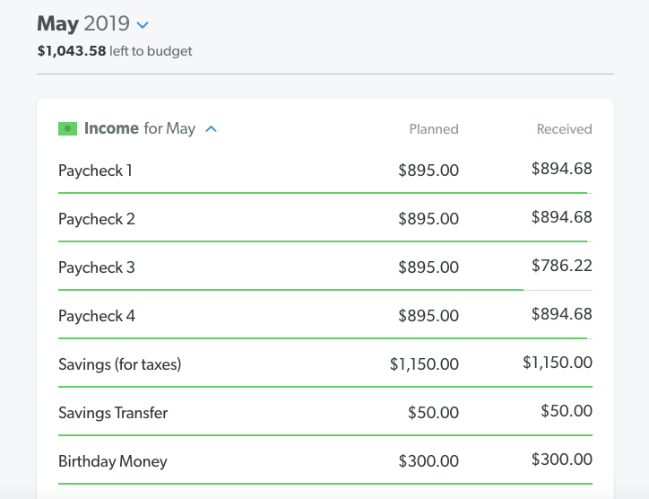 Logged into Everydollar and listed all the income that was coming my way for the month of May.